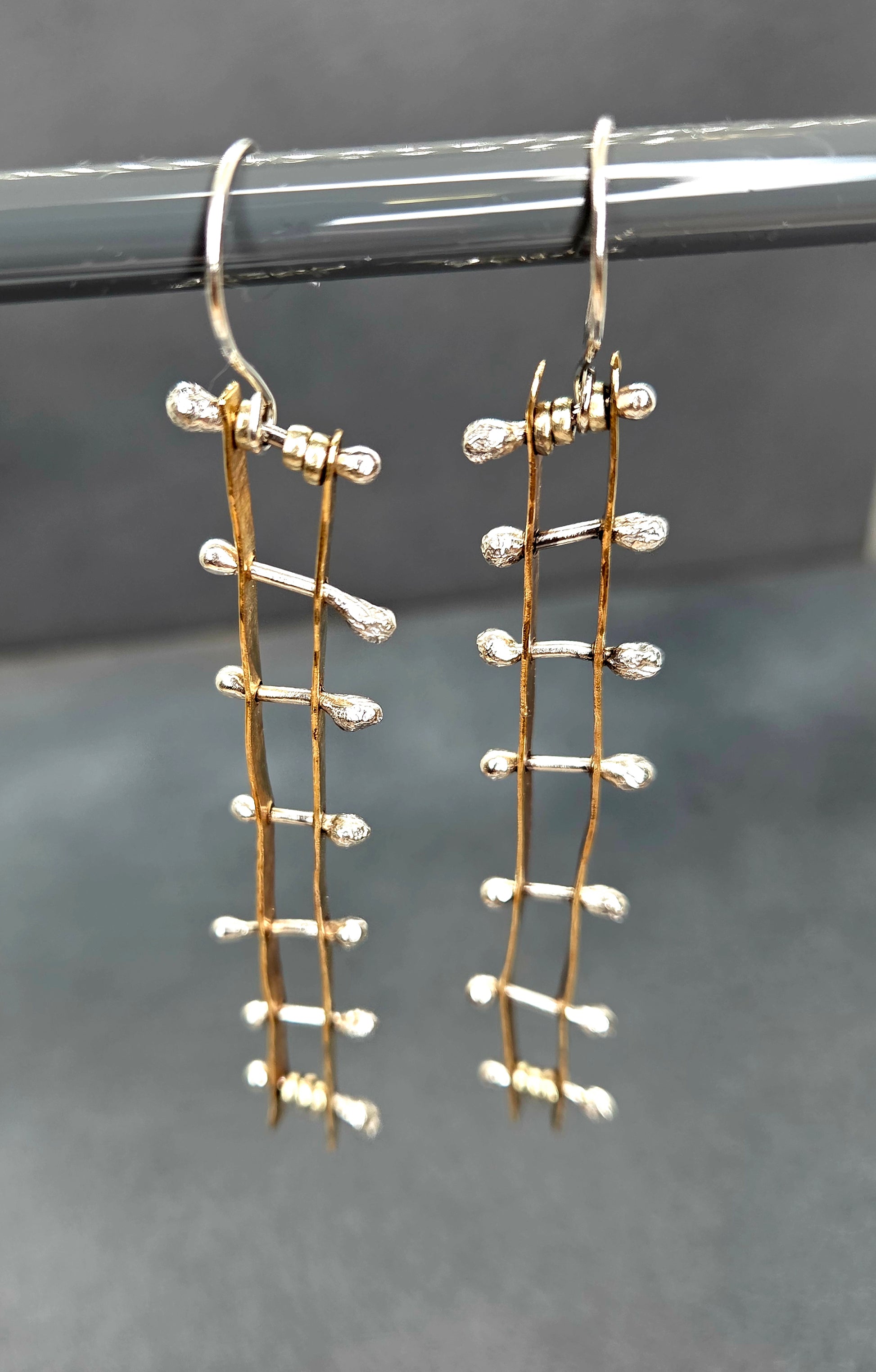 Modern brass and silver ladder earrings MTO